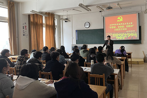 3月18日下午,生命科学学院研究生党支部在13号教学楼201室开展“学雷锋、讲奉献、扬精神”主题党日活动。本次活动由研究生党员刘承坤主持,党支部全体党员、入党积极分子及部分普通学生参加。