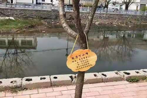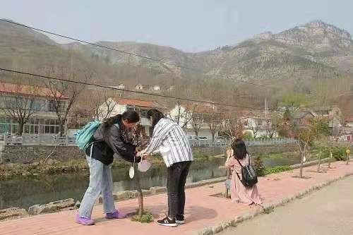 4月28日,生命科学学院青青环保社组织5名协会成员在淄博市博山区池上镇下小峰村为“和春天来场约会,樱花树等你认领”云植树活动中所认领的60株樱花树挂牌。下小峰村第一书记王仕强和学院2019级辅导员蒋育忻参加活动。