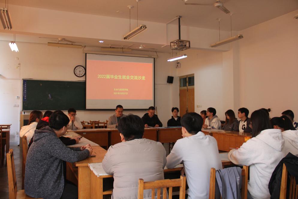 10月27日下午,学院在13号教学楼203室开展2022届毕业生就业沙龙,学院党总支副书记陆广峰出席活动,辅导员翟静涛、部分2018级毕业生参加交流。活动由翟静涛主持。
