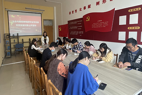 会议初始,崔帅帅向与会党员强调了此次党员发展对象公开答辩的严肃性,要求各位研究生党员本着认真严肃、实事求是的态度对待本次答辩。此次发展对象公开答辩分为个人陈述、现场答辩、与会党员自由提问和无记名投票四个环节。