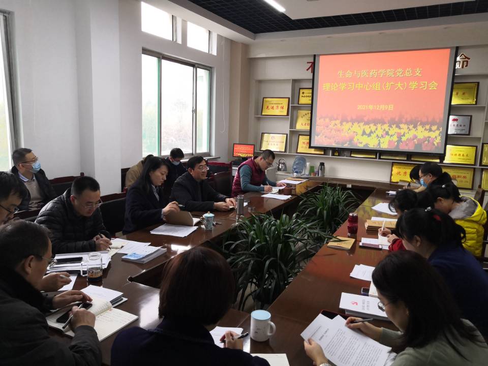 12月9日上午,学院党总支在13号教学楼270会议室举行理论学习中心组(扩大)学习会,集体学习党的十九届六中全会精神和习近平法治思想。学院党总支委员、班子成员、各党支部书记、教授委员会副主任、各办公室工作人员、各系(中心)主任参加会议。