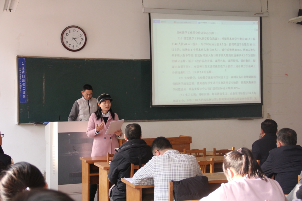 执行院长庞秋香作题为《锚定申博晋位,推动转型升级,凝心聚力开创特色强院建设新局面》工作报告,从教学和人才培养、人才引进和师资队伍、学科和学位点建设、科研和服务社会、交流合作与争取资源、党建和思想政治工作等7个方面,回顾了学院2021年的工作成绩,指出了存在的差距与不足,并从博士点申报、高水平人才引领、专业内涵和特色建设、科研和研究生培养、交流合作、学生工作、党建引领等7个方面对2022年工作做出部署。她指出,2022年是学院迈向新发展阶段的关键一年,全体教职工要在校党委、校行政领导下,凝心聚力,抢抓机遇,站在新起点,谋划新发展,推动特色强院建设实现新跨越。