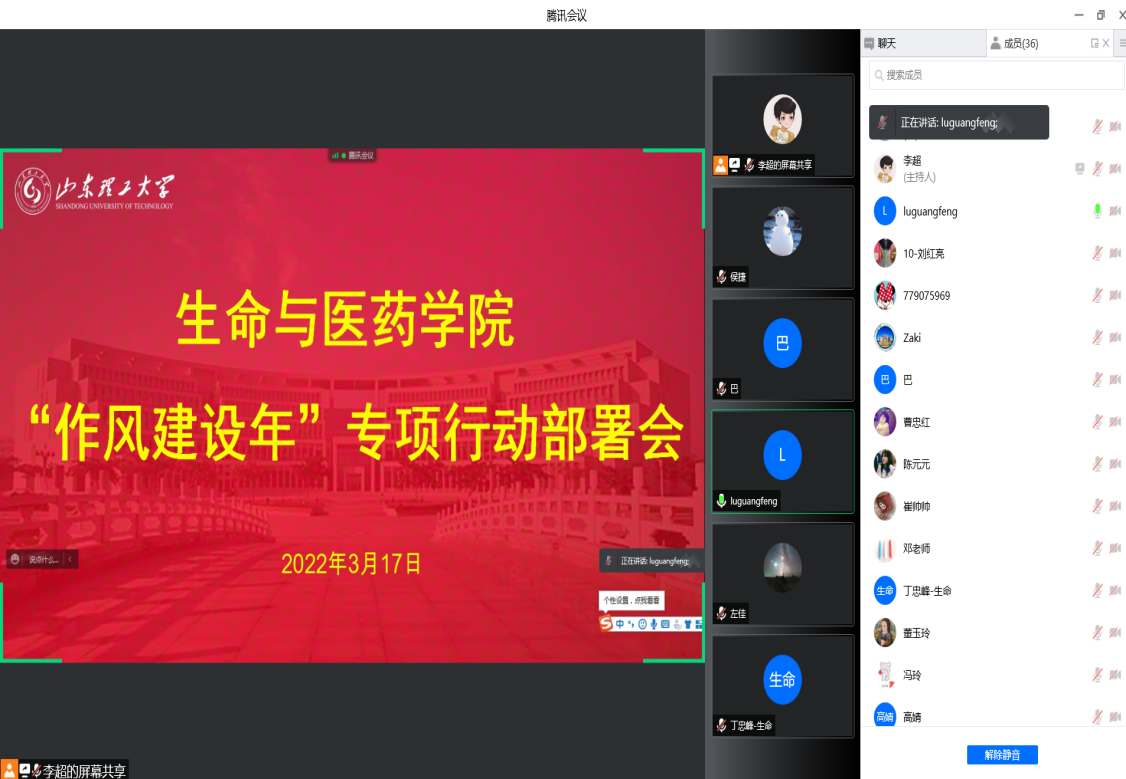 3月17日下午,williamhill英国党总支利用腾讯会议召开学院“作风建设年”专项行动工作部署会,学院领导班子成员,各办公室(中心)工作人员,各党支部书记、委员,各系主任、秘书参加会议。党总支副书记陆广峰主持会议。