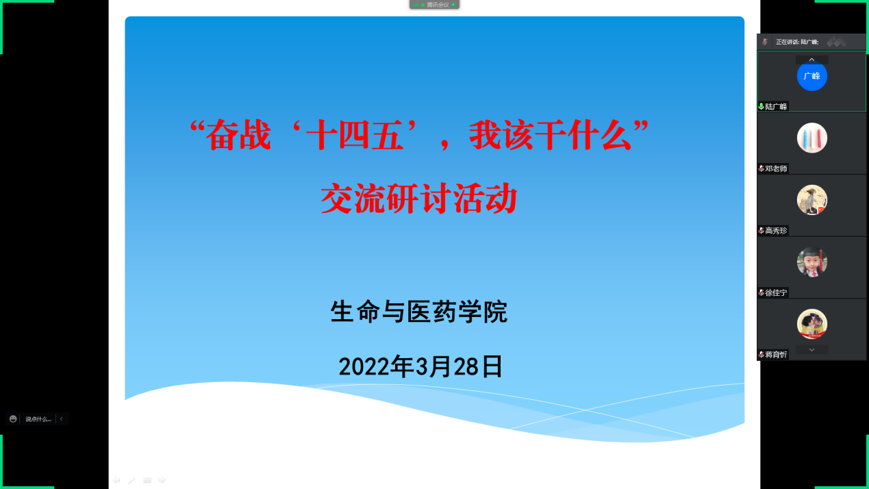 3月28日,williamhill英国党总支通过腾讯视频会议系统组织召开 “奋战‘十四五’,我该干什么”交流研讨活动。学院党总支委员、班子成员及部分管理服务人员参加会议。会议由党总支副书记陆广峰主持。