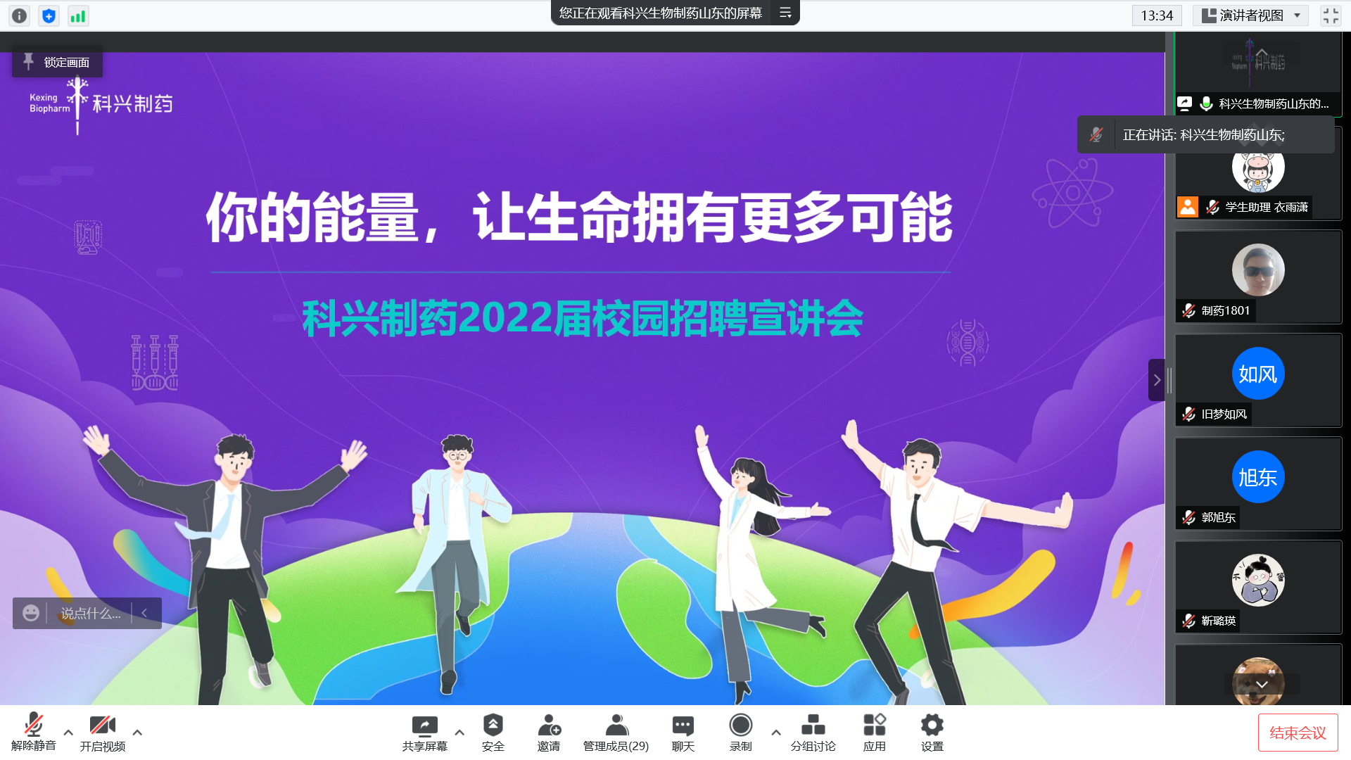 会前,翟静涛首先对活动组织目的、参会单位及开展流程做了简单介绍。随后,各用人单位按照会前顺序围绕企业简介、招聘计划、岗位设置、薪资待遇等内容进行了宣讲展示。