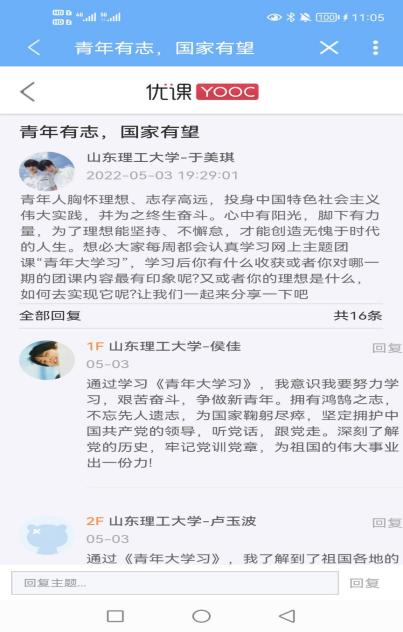 利用易班,开展“青年有志,国家有望”专题,让同学们写下每周观看《青年大学习》后的收获和感想,同学们畅所欲言。并相互讨论学习。