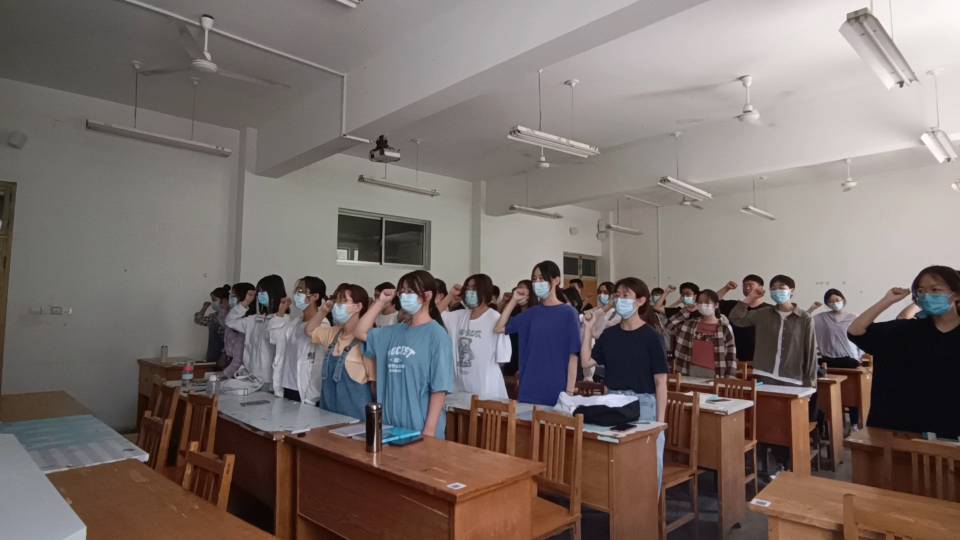 为庆祝中国共产主义青年团成立100周年,喜迎党的二十大,进一步强化我们团员意识,增强团员青年的责任感和荣誉感,2022年5月生教2101班团支部带领全体成员开展“重温入团誓词”和学唱团歌活动,引导广大团员不忘初心、牢记使命,听党话、跟党走。入团誓词,不单单是一句口号,更是一种誓言,它是不断激励与鞭策我们,它让我们牢记团员使命,让我们时时刻刻要以团员的身份要求自己。
