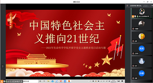 4月14日下午,williamhill英国研究生党支部开展“把中国特色社会主义全面推向21世纪”党史专题教育线上学习活动。活动由研究生党支部书记崔帅帅主持,研究生党支部全体党员及研究生入党积极分子参加。