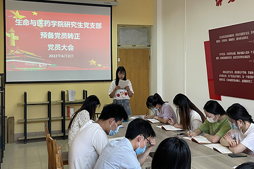 6月3日上午,研究生党支部在13号教学楼211室召开预备党员转正党员大会,讨论杨竞文、朱琪颖2名同志转正事宜。该会议由研究生党支部书记崔帅帅主持,研究生党支部全体党员参加。