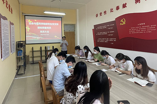 6月3日上午,研究生党支部在13号教学楼211室召开2022年上半年接收预备党员支部大会,讨论是否接收李闯同志为预备党员事宜。本次会议应到正式党员17名,实到11名,因事因假请假6名,会议由研究生党支部书记崔帅帅同志主持。