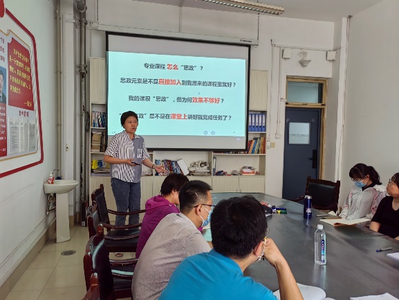 会议伊始,由秦洁老师作题为《端本正源,让课程思政回归专业课堂》的讲座。秦老师从本源回归、课程思政的融入、课程思政实施的12345模型三个方面阐述了课程思政的必要性和重要性,并向大家分享了她积累多年的教学案例和经验。通过秦老师的讲解,大家对课程思政的理解更加透彻,并相互交流了学习心得和教学过程中的困惑。讲座结束后,在系主任高秀珍老师的带领下,全体教师就课程团队的建设及课程思政的实施方案等问题进行了讨论,为专业认证工作的推进理清了思路。