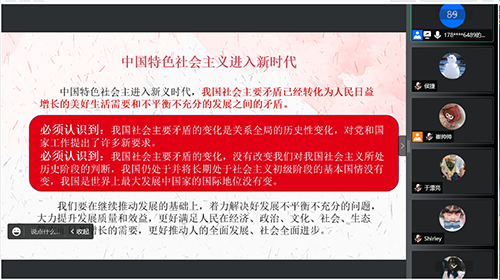 6月23日下午,研究生党支部开展“中国特色社会主义进入新时代”党史专题教育线上学习活动。活动由研究生党支部书记崔帅帅主持,研究生党支部全体党员参加学习。