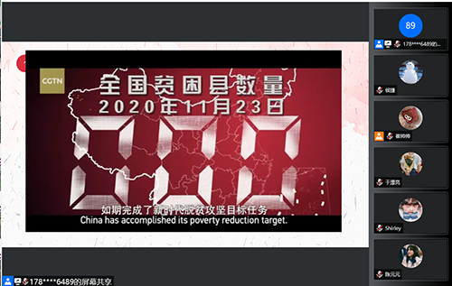随后孙娜结合视频资料介绍了十九大以来取得的工作成绩,着重介绍了脱贫攻坚战、扫黑除恶专项斗争和新冠肺炎疫情防控。此外,孙娜还介绍了“十四五”规划和2035年远景目标。