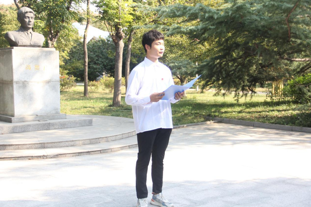 首先,校第二届“冯思广班”班长、williamhill英国本科生第一党支部党员赵智航讲述冯思广烈士事迹,号召大家向冯思广烈士学习,继承和发扬冯思广精神,在实现中华民族伟大复兴中国梦的新长征路上踔厉奋发、勇毅前行。