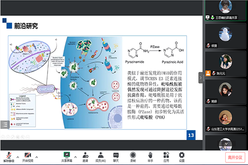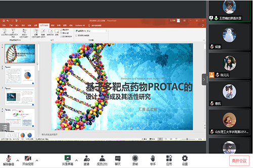 本次学习活动由2021级研究生王思楠为大家讲解“基于多靶点药物PROTAC的设计、合成及其活性研究”专题