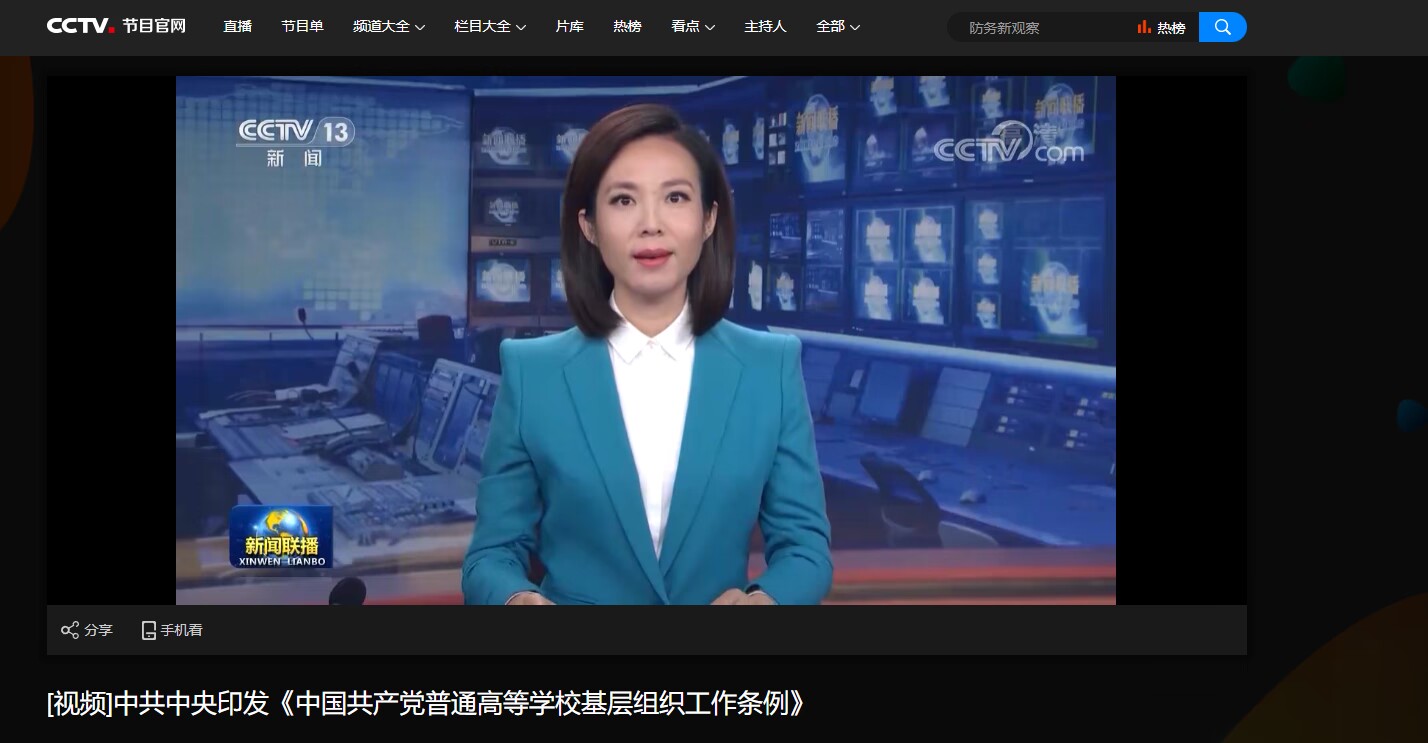 课上大家还集体观看了《新闻联播》关于“中共中央引发《中国共产党党徽党旗条例》”和“中共中央印发《中国共产党普通高等学校基层组织工作条例》”的视频新闻,并推送了两份条例的学习资料供会后学习。