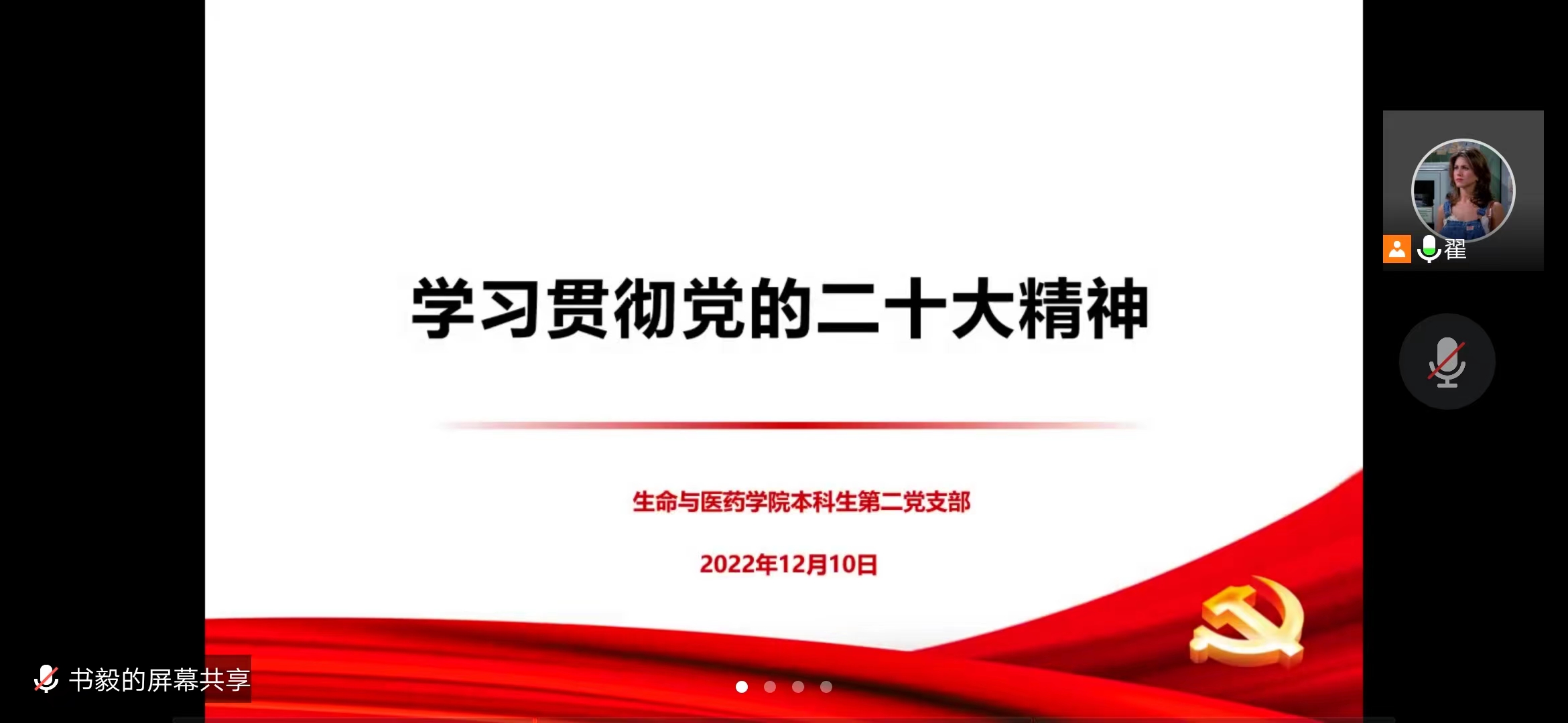 1210日晚,williamhill英国本科生第二党支部利用腾讯会议平台线上开展学习贯彻党的二十大精神专题党课。支部全体党员参加,党支部书记翟静涛主讲。