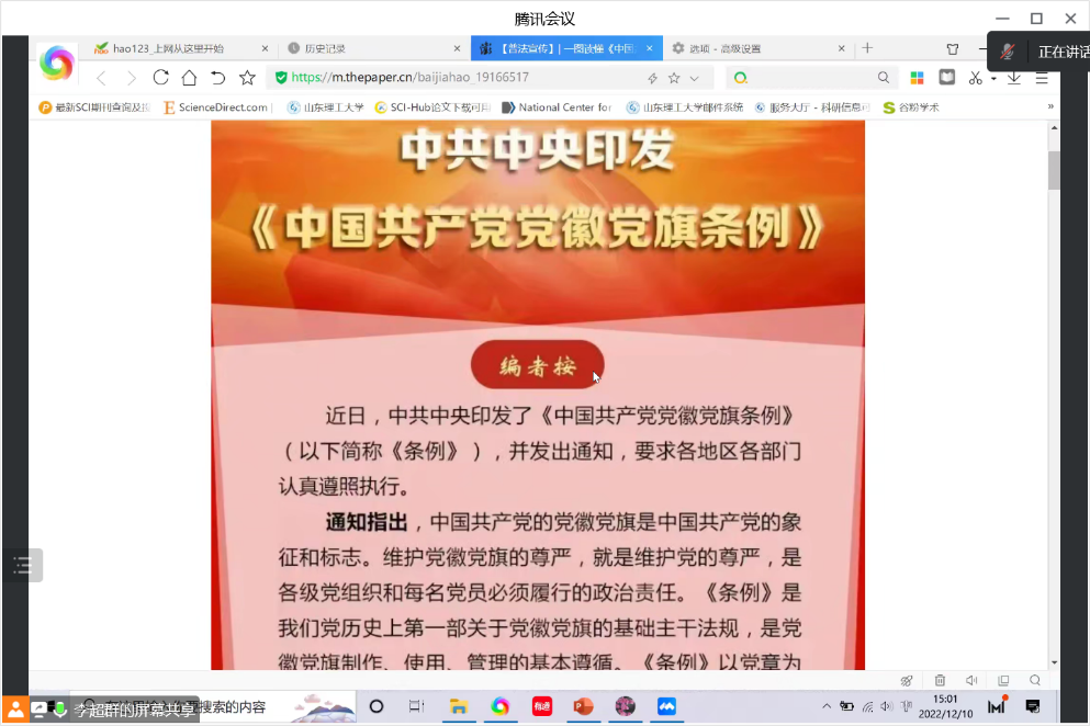 12月10日下午,生科系教工党支部通过线上的方式召开了集中学习会议。会议由支部书记李超群同志主持,支部全体党员参加了此次会议的学习。