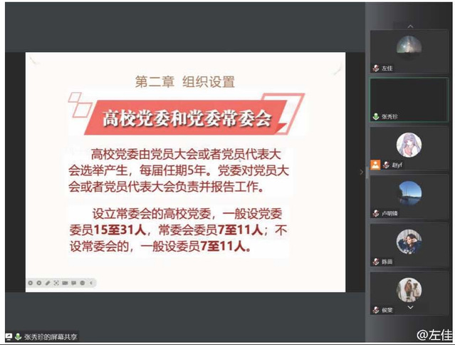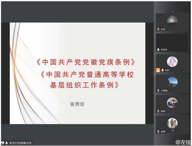 12月15日,生物工程系教工党支部召开线上会议,全体党员教师共同学习了党的相关基础法规和工作条例。