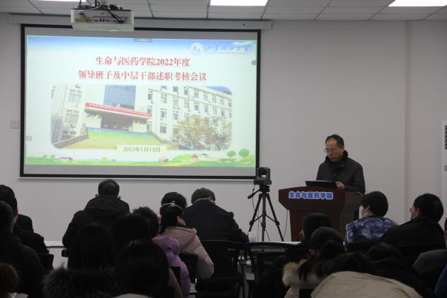 学院领导班子及中层干部述职评价期间,副院长巴连良代表学院领导班子作了2022年度工作述职报告。从党的建设、师资队伍、学科建设、本科人才培养、研究生人才培养、科学研究与社会服务、学生工作、实验室工作和安全稳定工作等9个方面,较系统总结回顾了学院一年来的工作成绩。