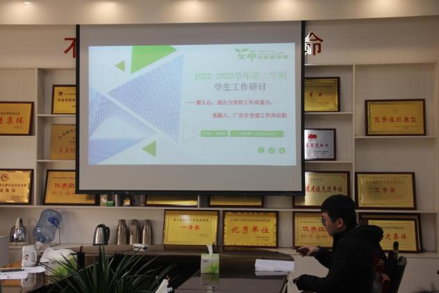 2月16日上午,学院在13教270室召开2022-2023学年第二学期学生工作研讨会暨学期初工作部署会。会议围绕寒假前夕研讨部署会相关安排进行了工作研讨,并就学期初有关工作进行了集中部署。全体辅导员参加,会议由党总支副书记陆广峰主持。
