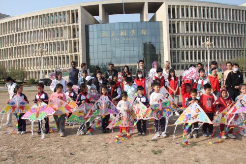 最后,志愿者们组织进行稷下湖踏青活动,并于逸夫图书馆南侧草坪放飞绘画完的风筝。