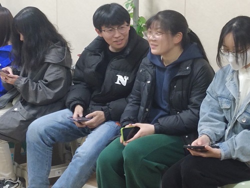 接着是大风吹游戏,场地内移除一把凳子并选出一位同学当作临时主持人,并发出“大风吹”或“小风吹”的指令并附加一定条件,发出大风吹的指令时满足附加条件(如穿白色上衣等)的同学应起身互换座位,此时台上的临时主持人可一同争抢座位,随后未抢到座位的同学担任下一轮游戏的临时主持人。