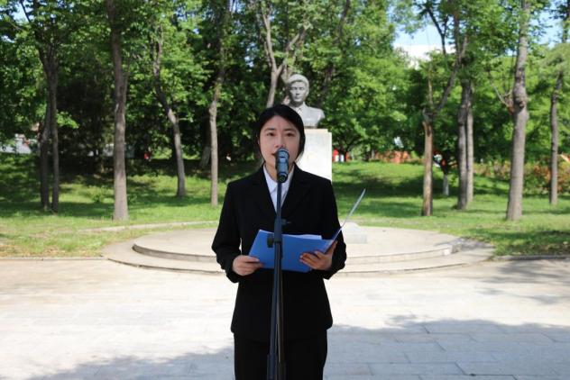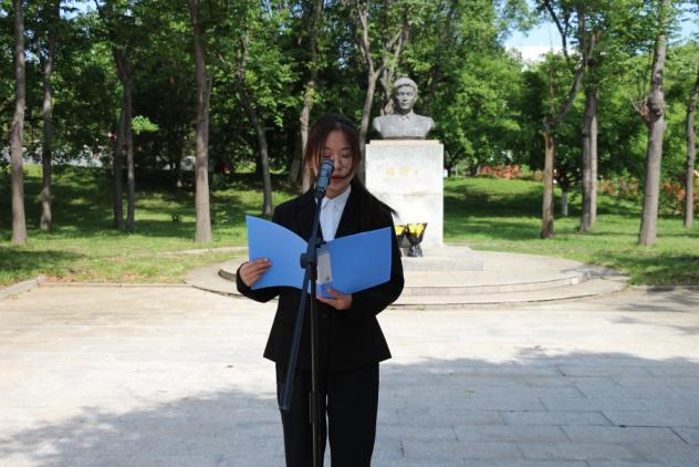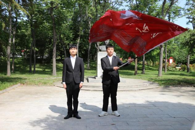“冯思广精神”宣讲团成员商玉鑫宣讲了冯思广烈士生平事迹,学生代表孙崇淇、孙丽娜向烈士雕像敬献鲜花,全体人员集体默哀悼念。第二届“冯思广班”团支书韩萍汇报了班团建设情况,校团委书记王振宣读了《关于命名第三届“冯思广班”的决定》,第二届“冯思广班”班长赵智航与第三届“冯思广班”班长韩松进行了班旗交接。第三届学生代表朱怡娴作了表态发言。