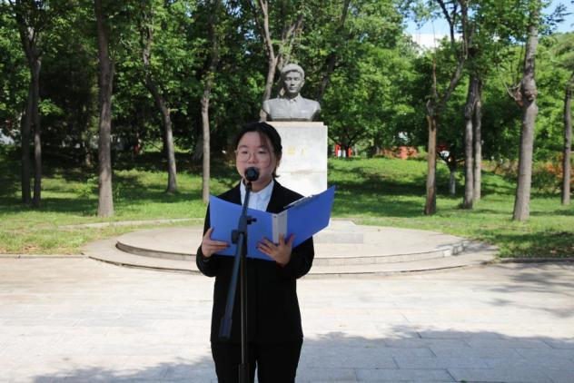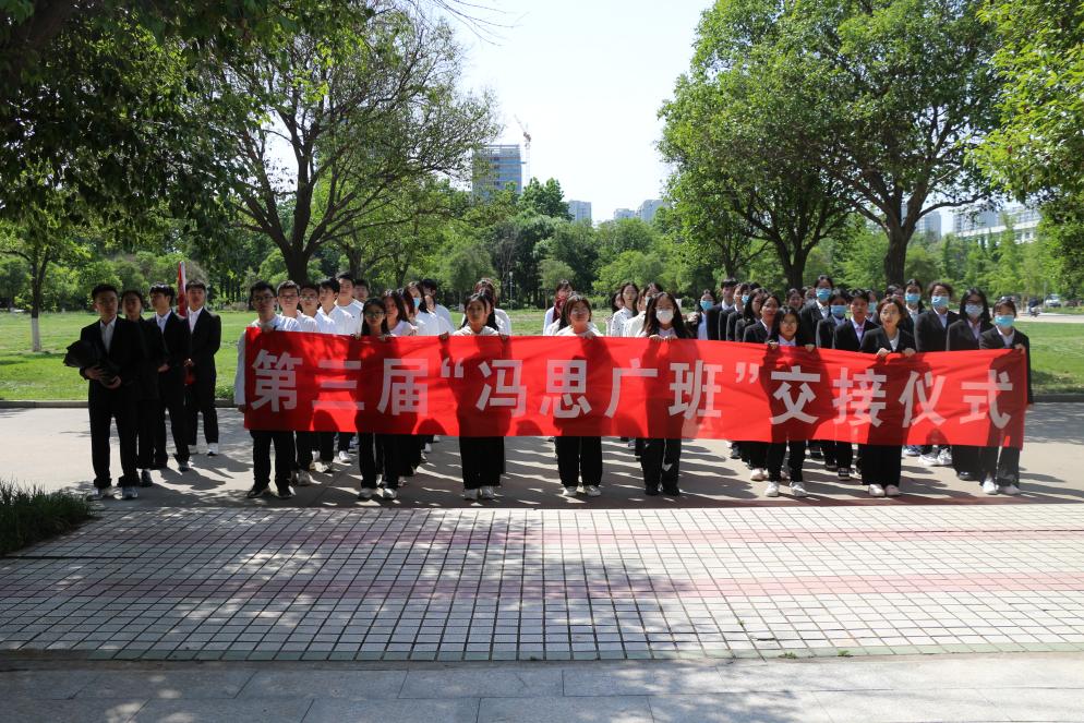 冯思广精神”宣讲团成员商玉鑫宣讲了冯思广烈士生平事迹,学生代表孙崇淇、孙丽娜向烈士雕像敬献鲜花,全体人员集体默哀悼念。第二届“冯思广班”团支书韩萍汇报了班团建设情况,校团委书记王振宣读了《关于命名第三届“冯思广班”的决定》,第二届“冯思广班”班长赵智航与第三届“冯思广班”班长韩松进行了班旗交接。第三届学生代表朱怡娴作了表态发言。