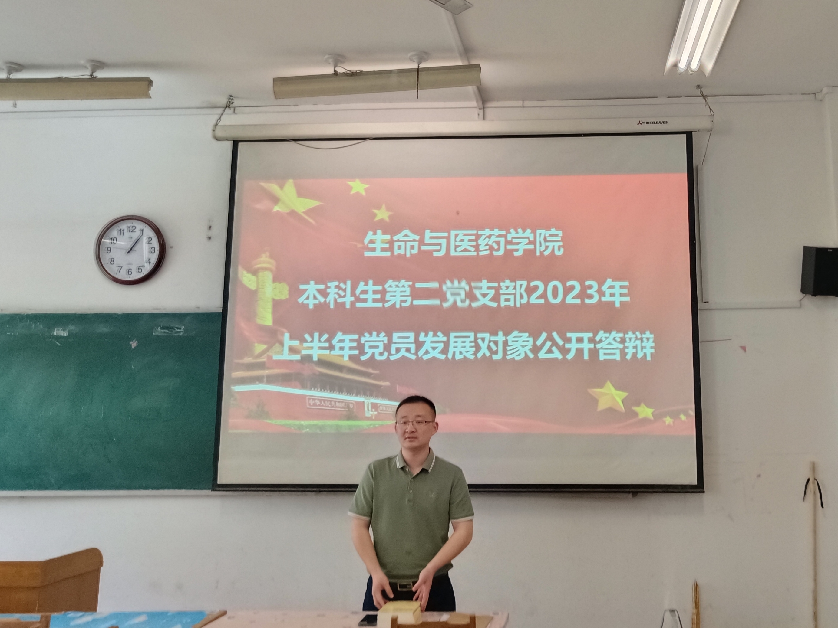 学院本科生第二党支部党员发展公开答辩顺利进行5月11日下午,学院本科生第二党支部在13号教学楼203室召开全体党员大会,开展2023年上半年党员发展公开答辩。支部全体党员及8位答辩人参加。会议由支部书记翟静涛主持。