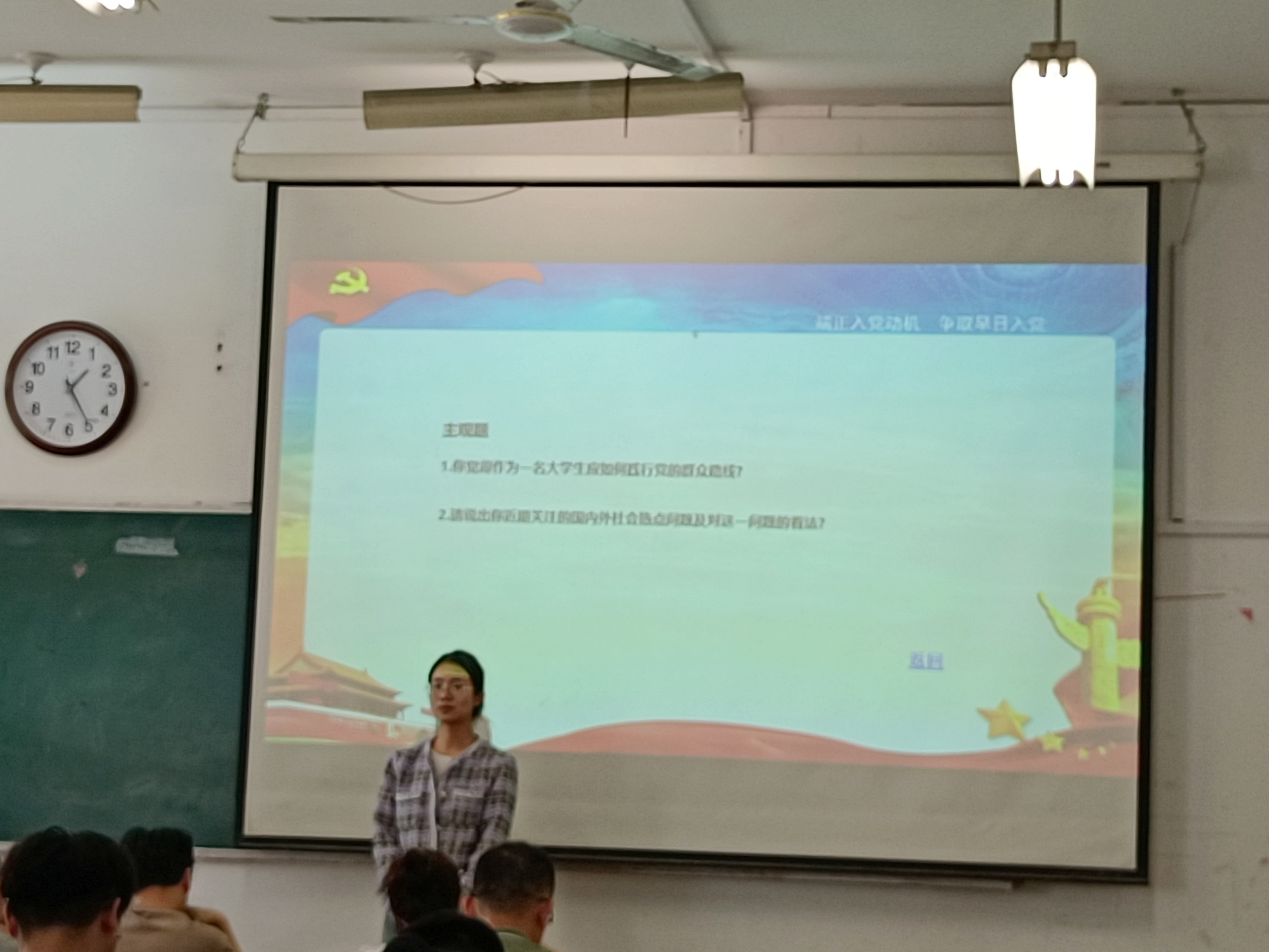 会议伊始,翟静涛简要介绍了开展流程及注意事项。随后,答辩人按照抽签顺序逐一介绍入党动机等情况,随机抽题进行理论常识问答并接受全体党员提问,内容涉及《中国共产党章程》、党的二十大大等。后由正式党员以无记名投票的方式表决答辩通过情况。