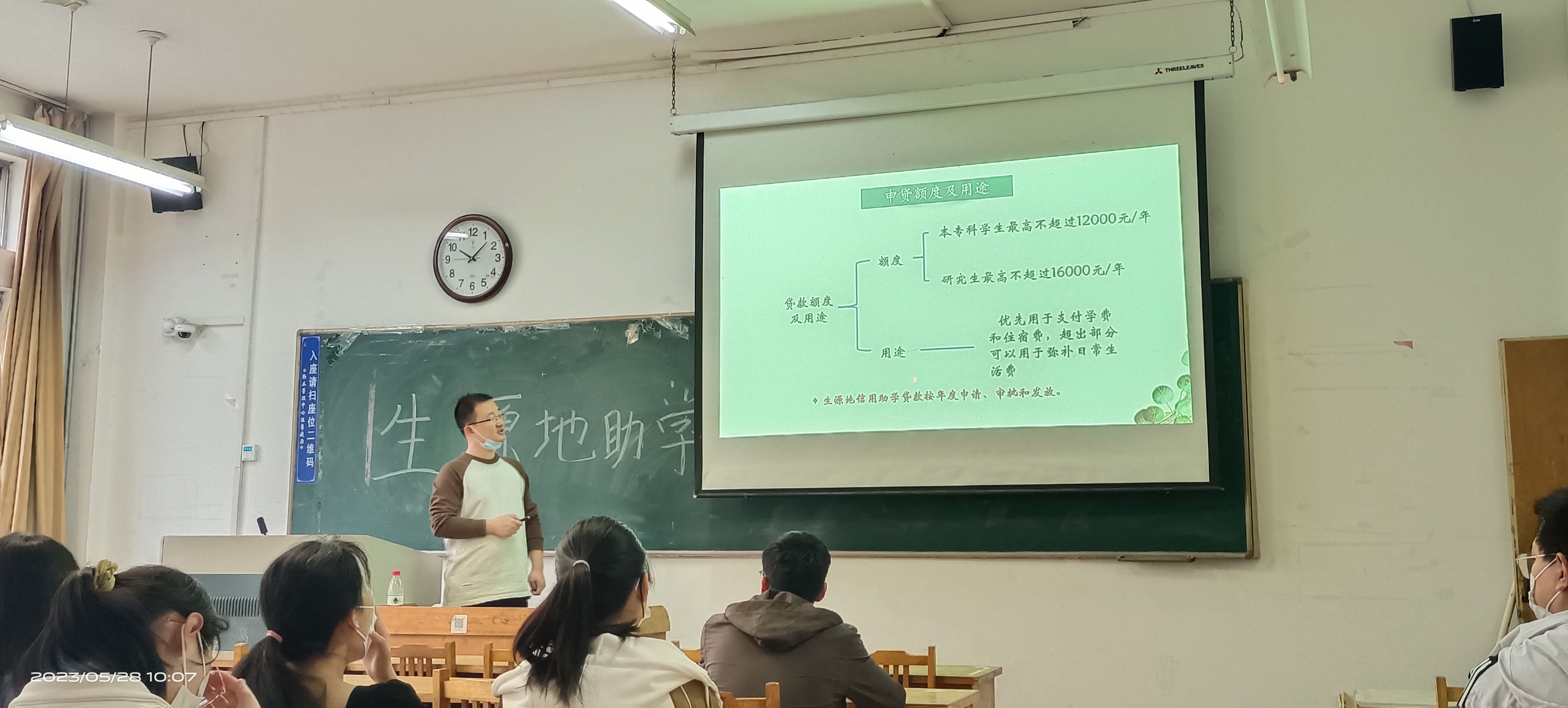 翟静涛介绍了本次宣讲的主题及内容,并围绕助学贷款的申请、发放和还款等事宜,结合具体事例进行了政策宣讲和业务指导。他指出,生源地信用助学贷款是国家开发银行等金融机构向符合条件的家庭经济困难的普通高校新生和在校生发放的、在学生入学前户籍所在县(市、区)办理的助学贷款,是党和国家重视教育、关心在校学生成长发展的具体体现。他要求,已办理助学贷款的学生要及时关注各时间节点,对照做好材料上报等事宜,尤其毕业前夕要及时进行毕业确认工作,避免因个人疏忽造成逾期还款等情况发生。他强调,所有人都要珍惜个人信用,充分认识其对个人生活发展的重要影响,做到及时还款。他还提醒大家要增强个人隐私保护和安全防范意识,保管好个人账号密码,谨防诈骗更不能参与各种形式的网络电信诈骗活动。