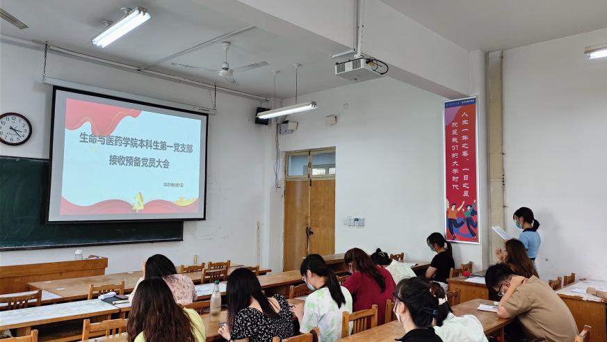 会议伊始,由蒋育忻介绍会议情况,清点、报告应出席党员人数和实际到会人数,并强调会议纪律。随后,14名申请入党人依次宣读《入党志愿书》,汇报自己的入党动机、过程、入党态度、本人简历以及需要向党组织说明的问题。紧接着,入党介绍人介绍申请人政治思想、生活、工作、学习等情况,支部宣传委员陈颖洁同志对申请入党人能否入党进行充分讨论、评议,与会正式党员对申请人发表评价,提出优缺点,采取无记名投票方式进行表决。蒋育忻现场通报投票结果,同意刘翰焜等14名同志为中共预备党员,刘翰焜等14名同志依次表态,表示今后将以优秀党员标准严格要求自己,克服自身缺点和不足,努力向优秀共产党员靠拢。全体党员对新党员鼓掌祝贺。