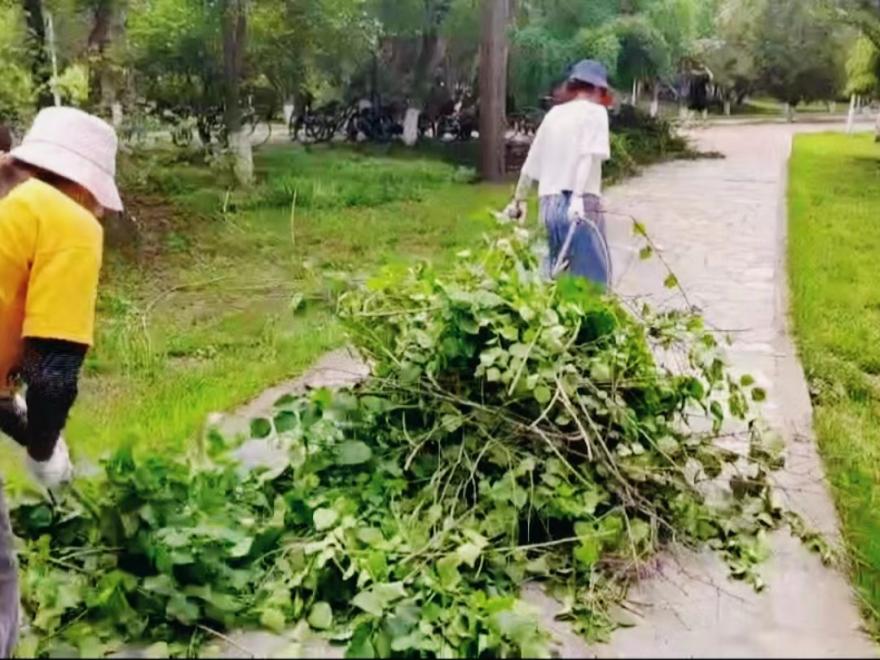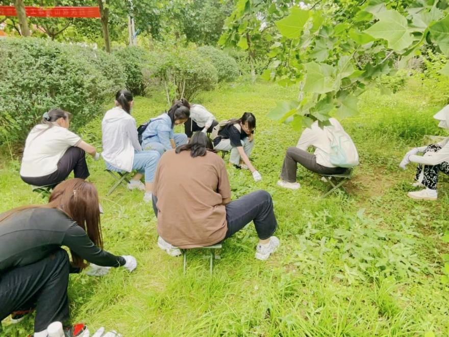 夏日的绿,在天地间挥毫泼墨。背后,是夏天,是似火的骄阳;眼下,是青春,是眼底的汗水。生教2201班的同学们坐在小马扎上用双手拔掉花园草丛的杂草进行学校绿化养护,美化校园环境。