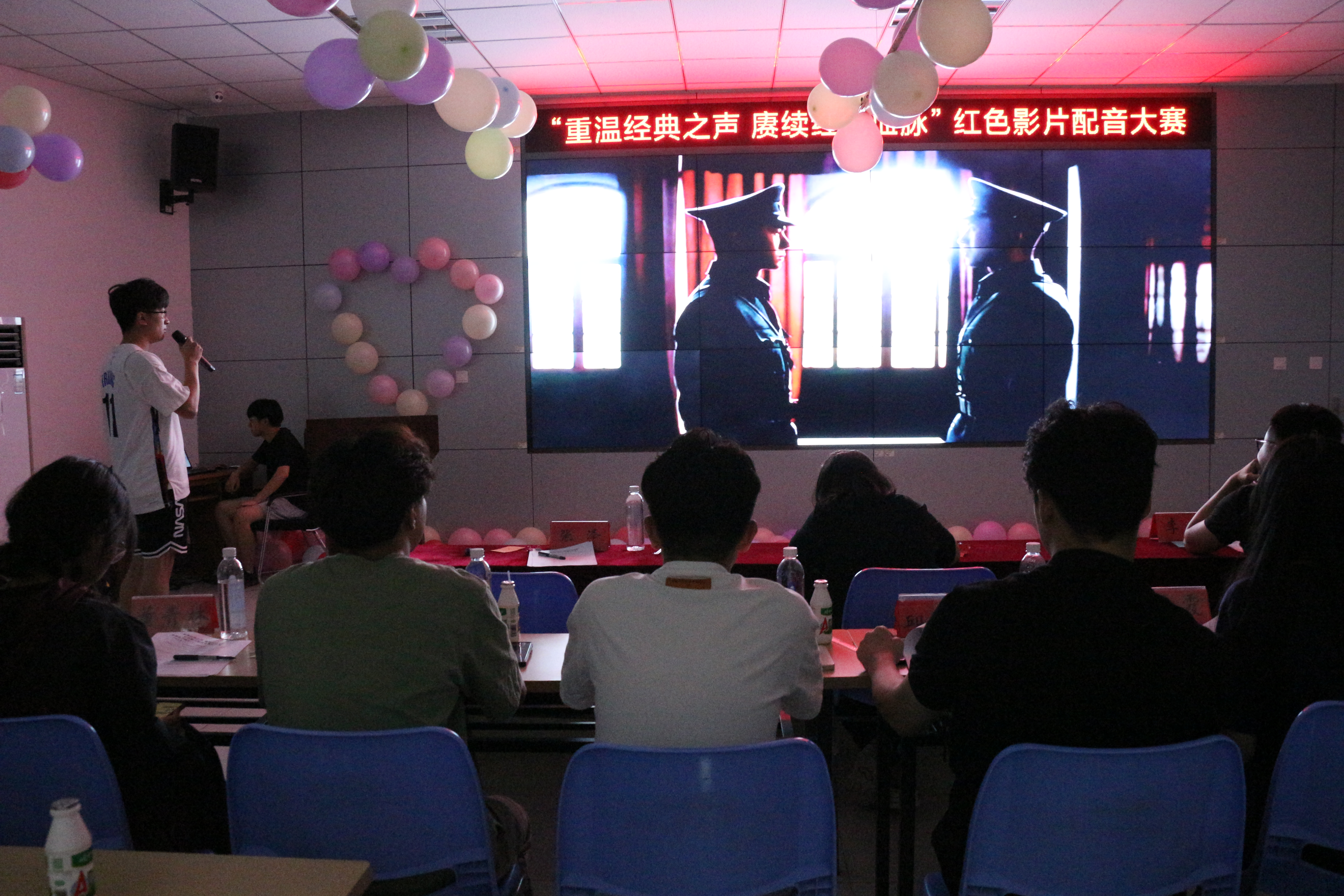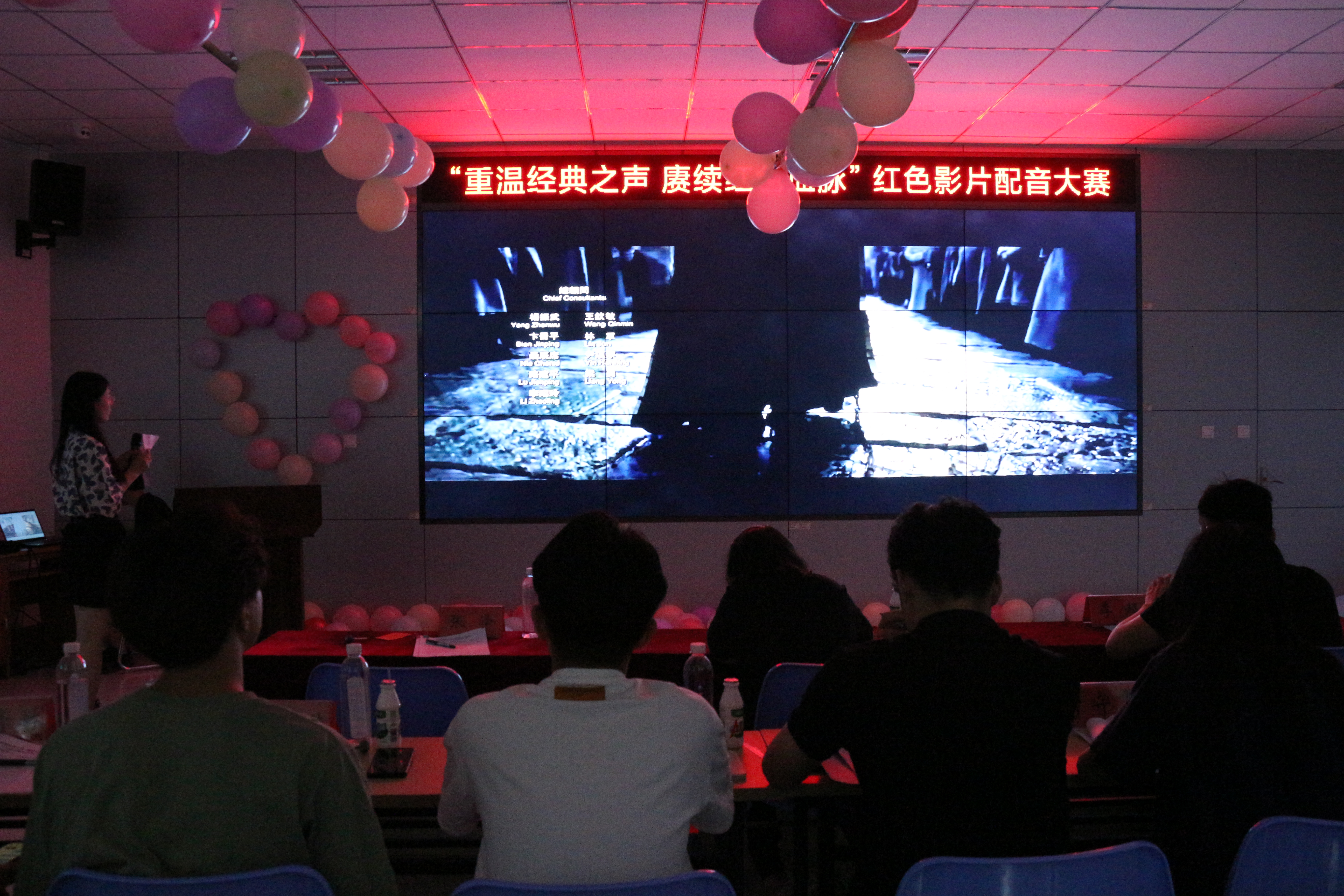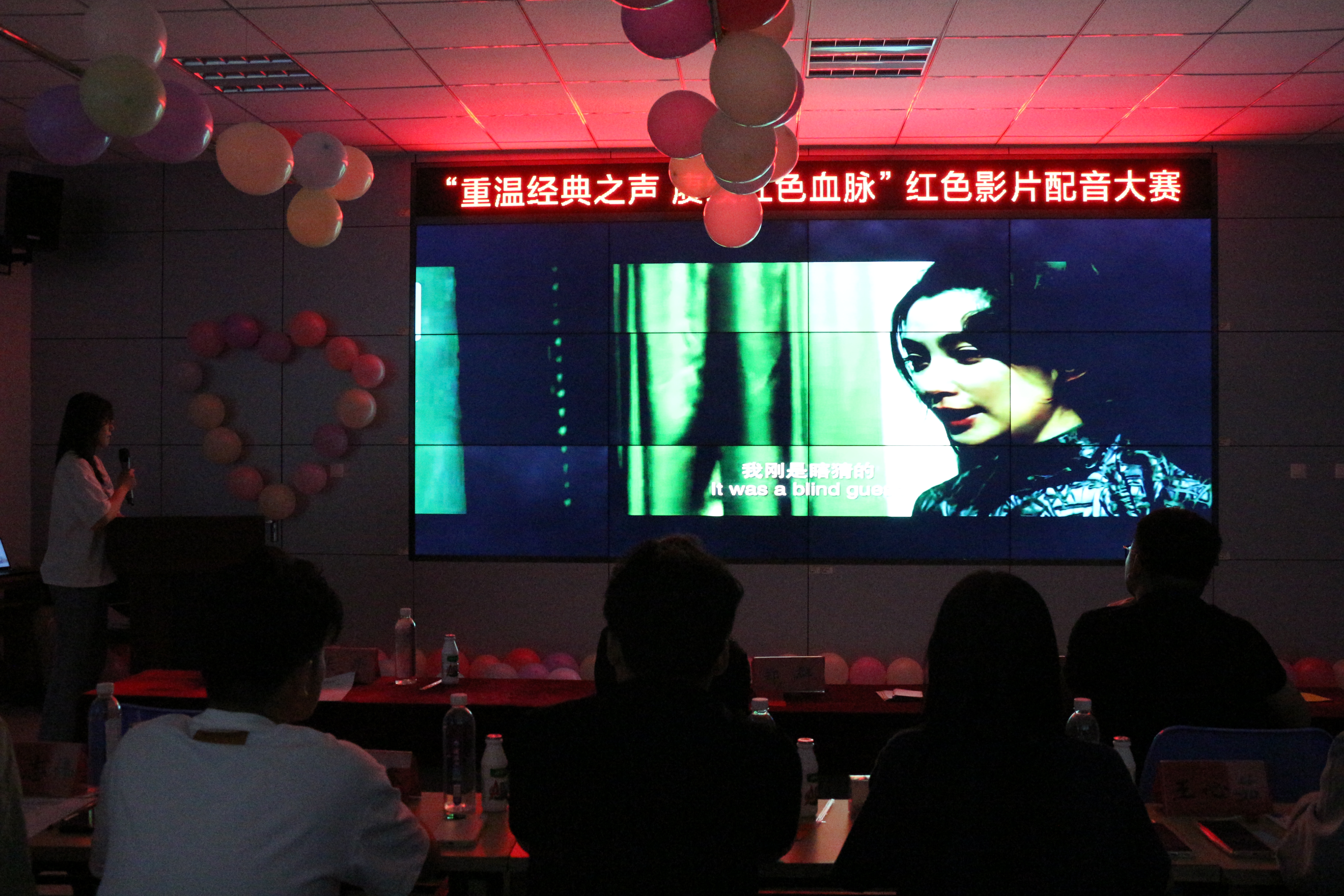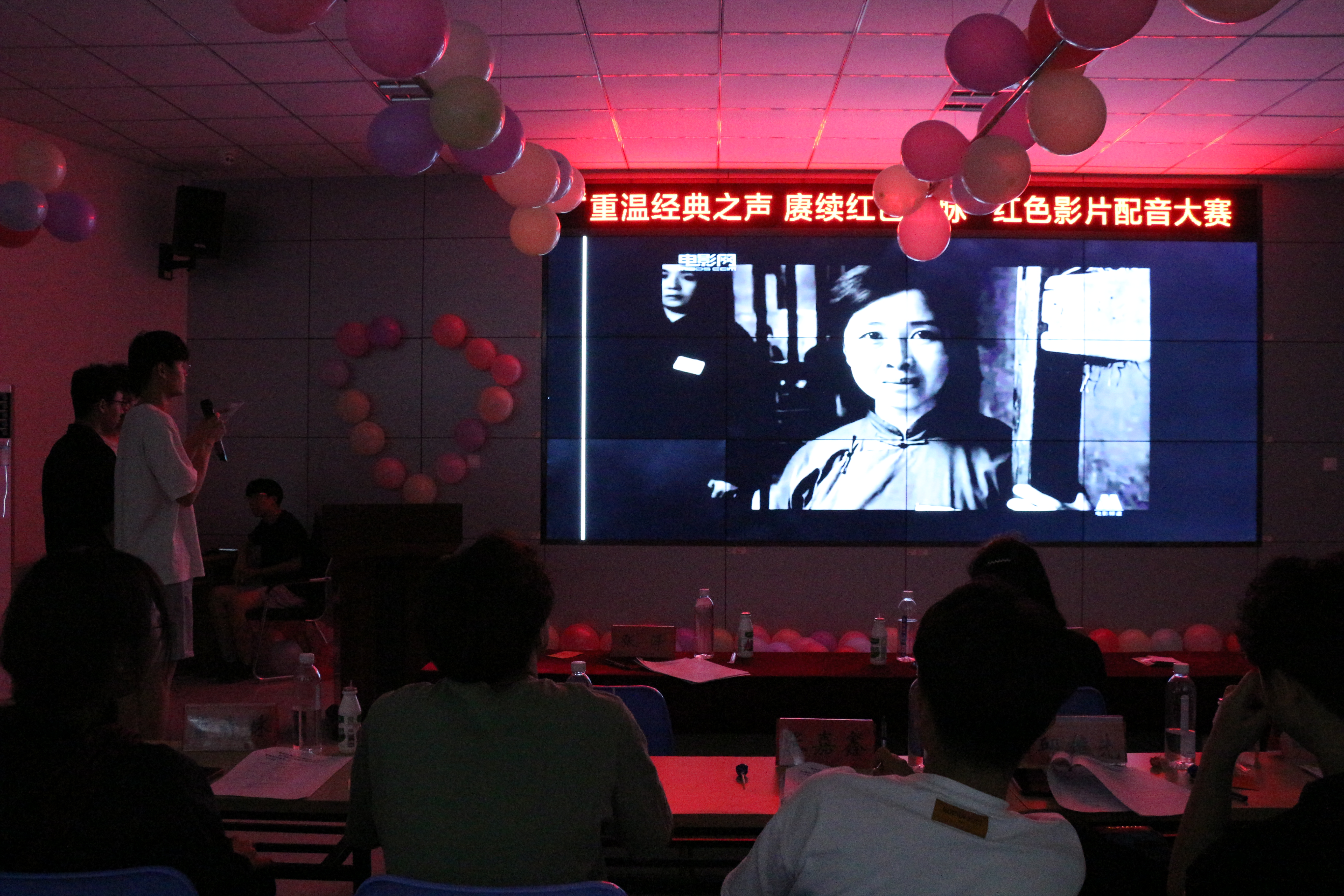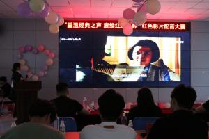 活动伊始,现场人员共同观看了红色影片原声展演,随着现场灯光关闭,比赛正式开始。本次比赛选手们带来的配音题材丰富多样,有历史故事、英雄人物、经典影视等。第一轮配音中共有六组,参赛选手分别带来了《海棠依旧》、《觉醒年代》、《满江红》、《辛亥革命》、《理想照耀中国》、《决胜时刻》等优质红色影片的配音“秀”。电影画面或黑白,或亮彩,感染了现场师生。电影的声音穿越了历史,抵达耳畔,在内心的“回荡”。澎湃激昂的背景音乐,铿锵有力的呼号呐喊,情真意切地娓娓道来,使在场观众对接下来的几组配音表演更是充满了期待。