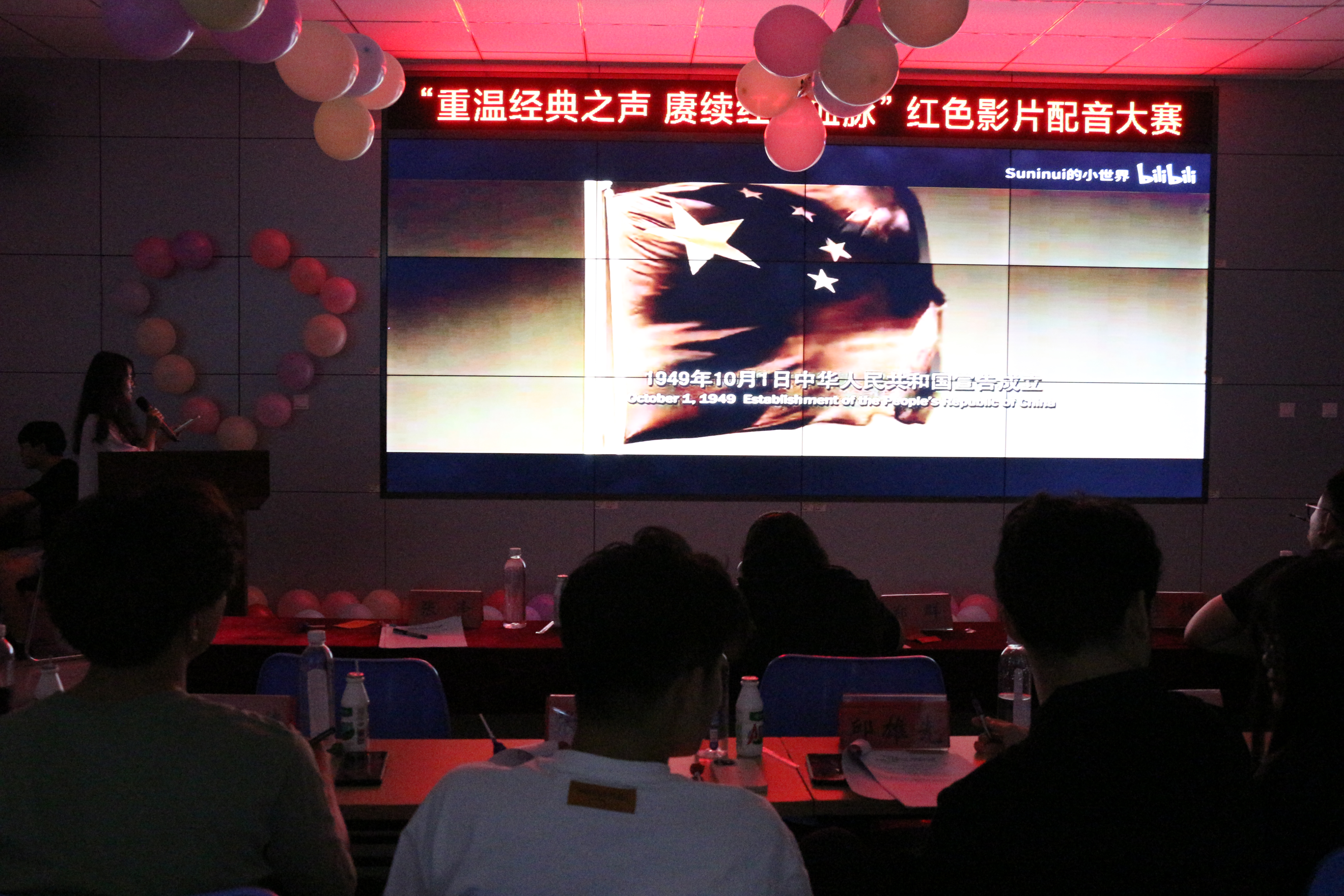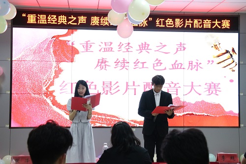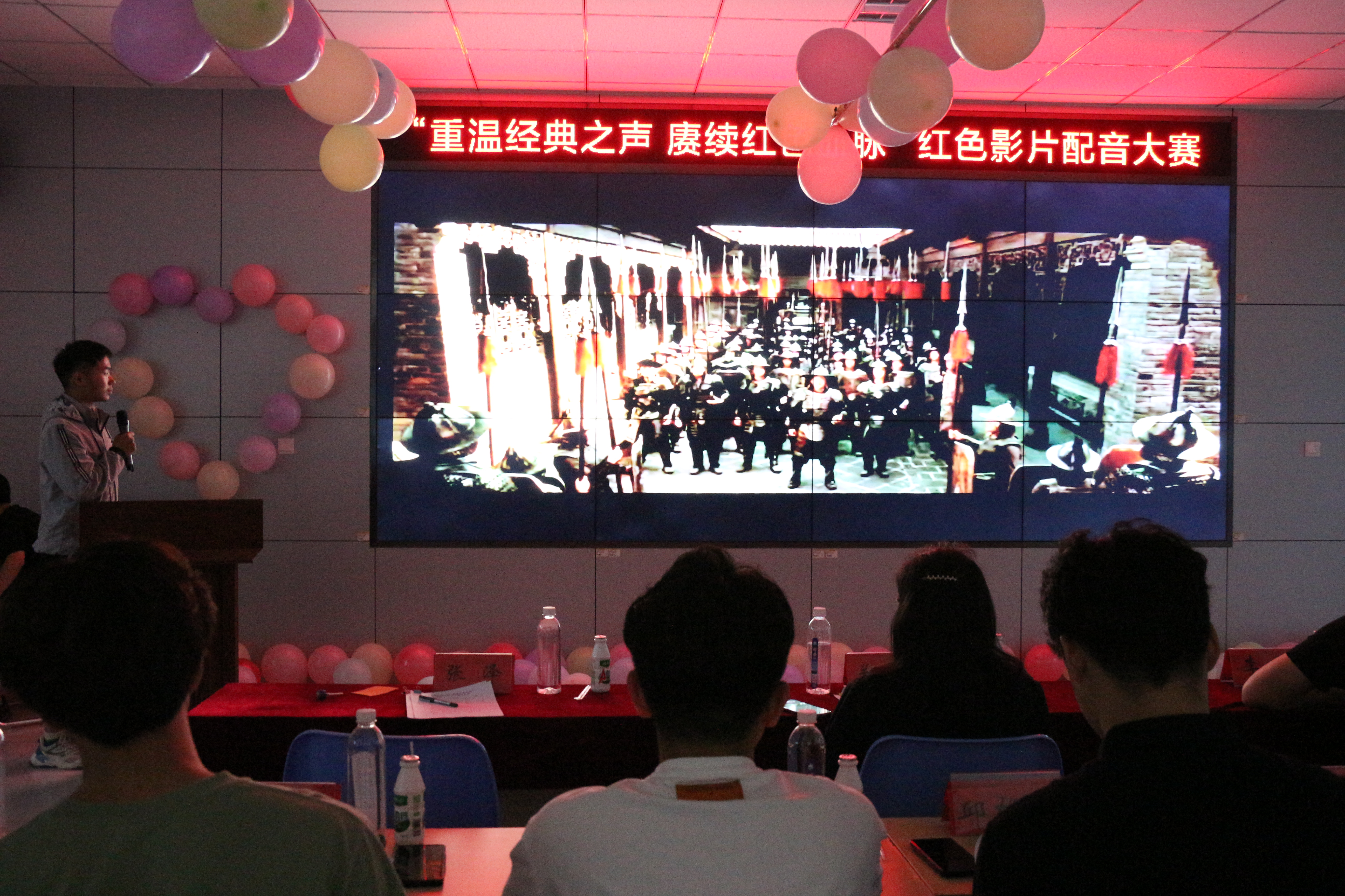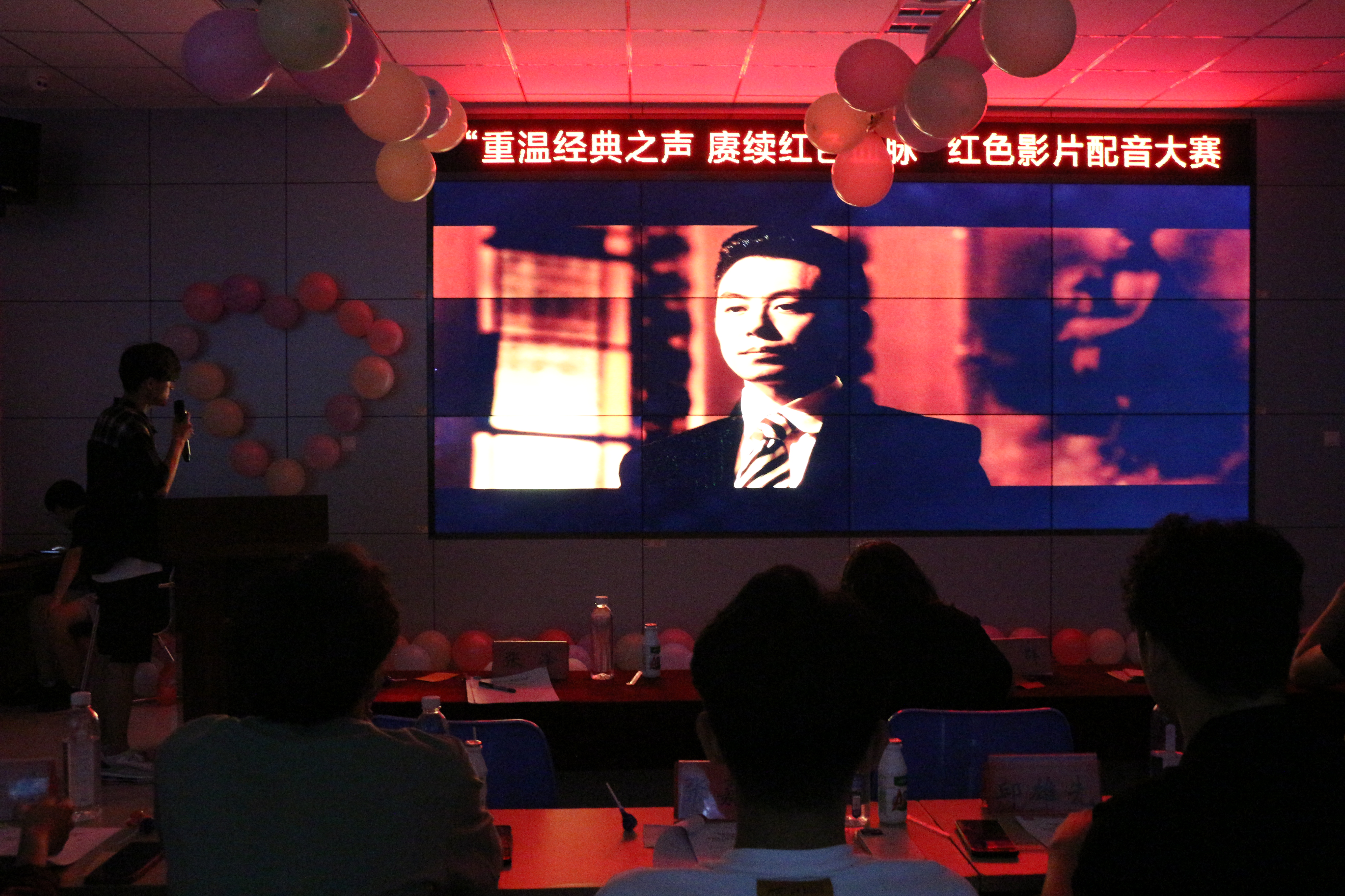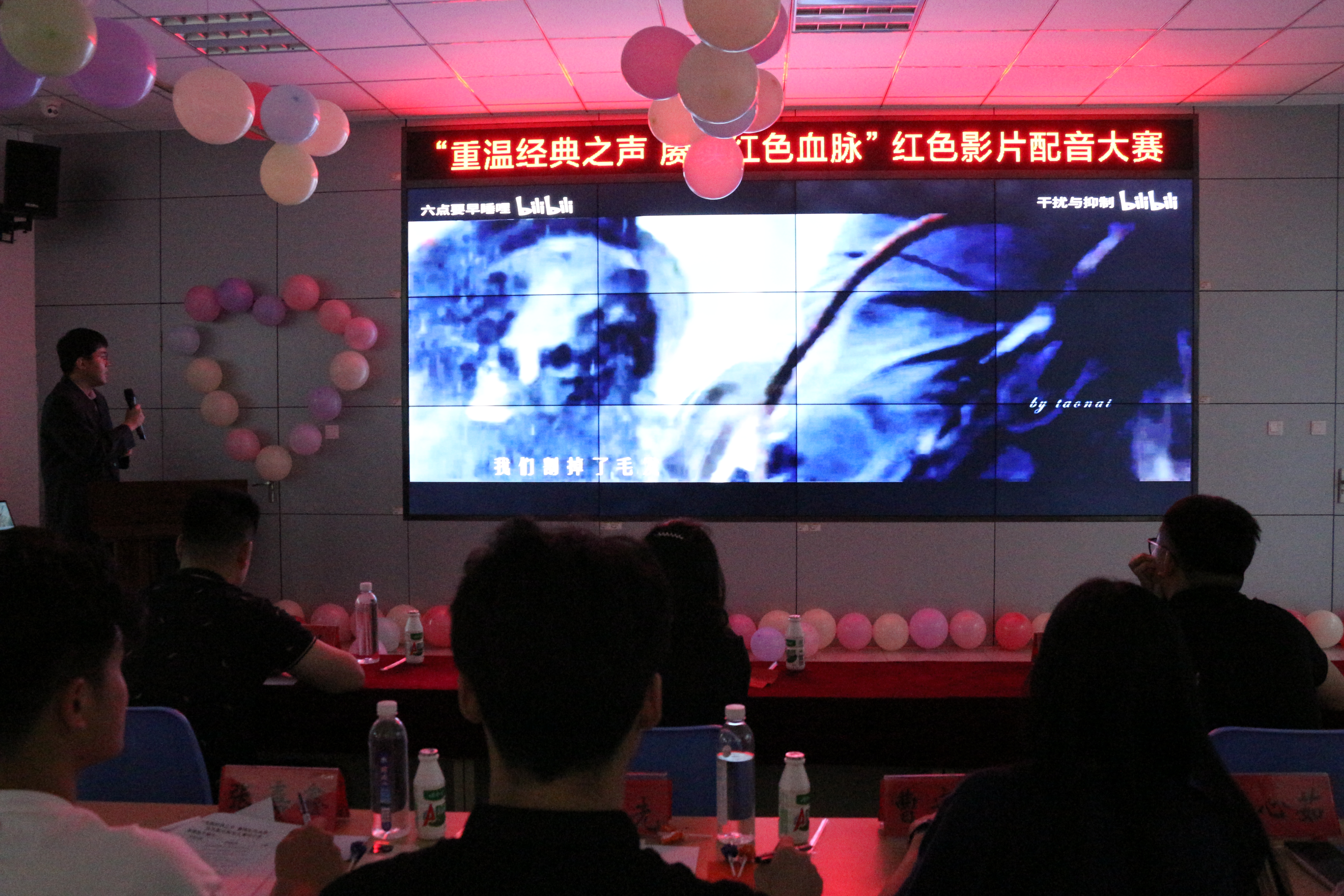 活动伊始,现场人员共同观看了红色影片原声展演,随着现场灯光关闭,比赛正式开始。本次比赛选手们带来的配音题材丰富多样,有历史故事、英雄人物、经典影视等。第一轮配音中共有六组,参赛选手分别带来了《海棠依旧》、《觉醒年代》、《满江红》、《辛亥革命》、《理想照耀中国》、《决胜时刻》等优质红色影片的配音“秀”。电影画面或黑白,或亮彩,感染了现场师生。电影的声音穿越了历史,抵达耳畔,在内心的“回荡”。澎湃激昂的背景音乐,铿锵有力的呼号呐喊,情真意切地娓娓道来,使在场观众对接下来的几组配音表演更是充满了期待。