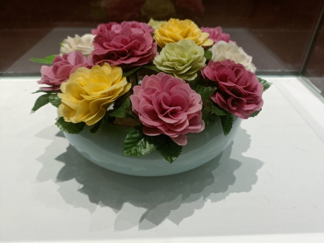 图4 图为展厅内展品——使用煎饼制作的花卉。