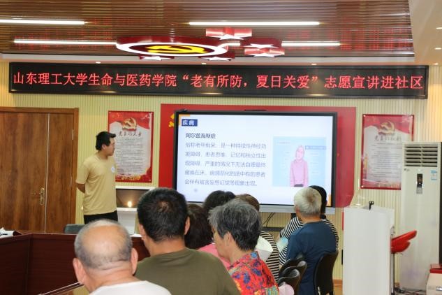 “老年病”并非是老年人患有的所有疾病,主要是指那些老年人“高发的疾病”和老年人“特有的疾病”,前者如冠心病、高血压病、慢性阻塞性肺病(COPD)、高脂血症、脑血管病、糖尿病等,后者如老年期痴呆、帕金森病、老年白内障、前列腺增生症、老年骨质疏松症、老年耳聋等。老年人所患疾病主要有患病率高,临床表现不明显,多疾病共存,药物不良反应高发等特点,加上夏天天气炎热,有的老人不舍得开空调,容易出现中暑现象,也有的老人长期处在空调房中,容易导致空调病。针对以上现象,本实践团队经过开会讨论,分配任务,最后选择了脑卒中,老年骨质疏松,老年性白内障,高血压,糖尿病,阿尔茨海默症,空调病这七种疾病,从症状,治疗和预防三方面进行科普,由团队成员张誉函,王文虹,霍元龙,杨浩然进行PPT的制作,由团队成员郑浩辰和负责人薛立松进行讲解。