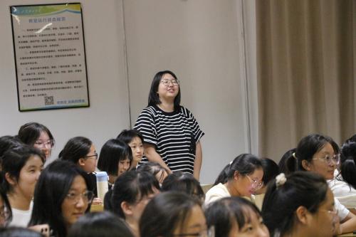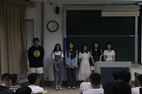会议伊始,刘丛丛向全体新生的到来表示热烈祝贺与欢迎,并依次介绍2022级带班学长学姐。生物科学、生物科学(师范类)、生物工程、制药工程四个专业带班学长学姐分别上台向新生进行答疑解惑,使新生更加了解大学生活。