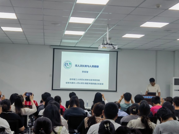 9月13日上午,中国科学院院士,昆明理工大学特聘教授、博士生导师,昆明理工大学灵长类转化医学研究院院长应邀为我校师生做题为“非人灵长类与人类健康”的学术报告。本次学术报告会由杨凤堂院长主持,教务处处长庞秋香、执行院长王传贵、副院长邓洪宽、副院长赵倩、院长助理徐佳宁和全校部分教师、研究生、本科生聆听了季院士的报告。