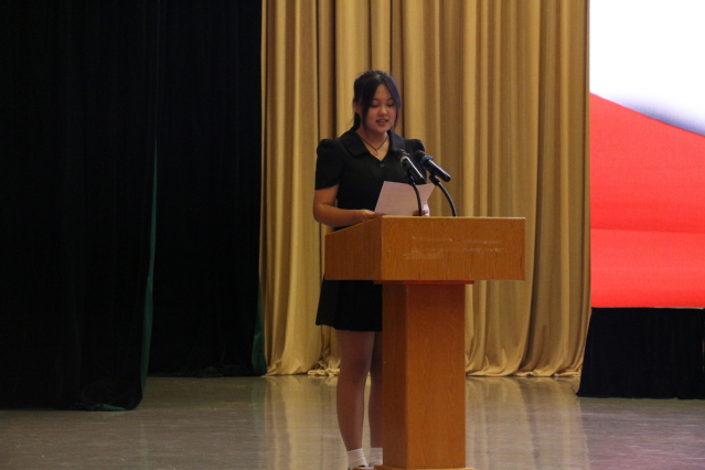 生教2301班朱炳豪作新生代表发言。他表示要在大学舞台上展示自我、超越自我,在未来大学生活中做到尊敬师长,团结同学,努力提高自身素质、开拓创新,严于律己,树立规范意识,秉持校风,恪守校训,为自己、为学校、为祖国的未来努力奋斗。