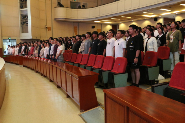 最后,全体师生奏唱校歌《你伴随我》,展现对学校的热爱与敬仰之情。