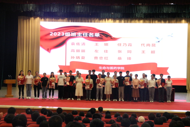 随后,学院领导为2023级本科生班主任颁发聘书,2023级学生代表上台为班主任敬献鲜花。