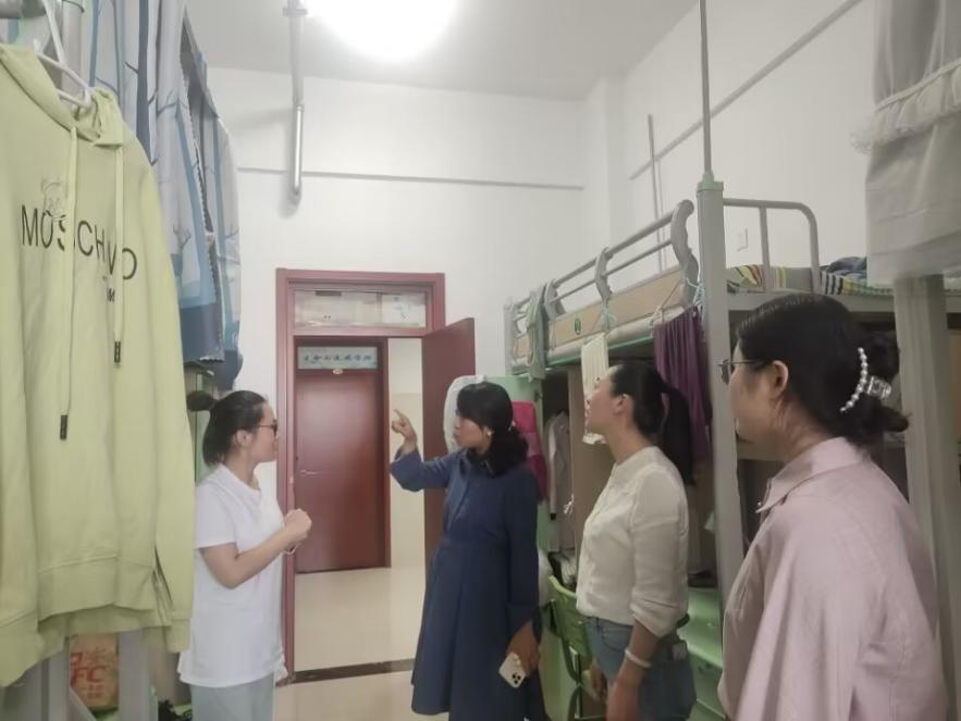 走访期间,学院一行查看了学生宿舍设施情况,对部分宿舍卫生清扫不及时、不当使用床帘等做了提醒,并提出了整改要求。叮嘱大家要提高安全防范意识,严格按照学校、学院要求,自觉做好宿舍火电隐患排查、整改等事宜,并对学生假期安全出行事宜做了提醒,就中秋、国庆双节送上关心祝福。