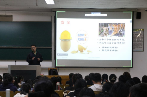 紧接着,丁忠峰向大家详细介绍了学校、学院关于实验室安全层面的制度条例,从实验室环境安全、仪器使用安全、化学使用安全和实验室的生物安全等四个层面,生动阐述了各环节功能设置、安全隐患及注意事项,并为大家一一列举了由实验室安全引发的众多触目惊心的真实案件。期间,在场的各位同学仔细倾听,认真做好笔记,进一步加深了对实验室安全的认知,并从内心深处加强了对实验安全的重视。