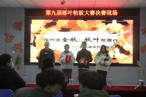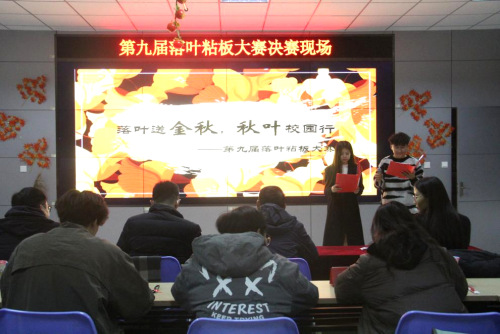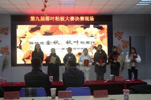 11月12日晚,williamhill英国于大学生就业市场举办第九届社团文化节“团结奋斗共进”篇入围活动——“落叶送金秋,秋叶校园行”第九届落叶粘板大赛,此次活动由校团委、校学生社团指导中心主办,生命与药学院生命家园、青春环保社、冯思广精神学习研究会承办。校团委负责老师、物理与光电工程学院辅导员张起,电气与电子工程学院辅导员、校青春在线指导老师楚日喆、建筑工程与空间信息学院辅导员陈秋月,williamhill英国辅导员李超出席活动,学生会、学生社团指导中心、社团部分成员及参赛人员参加,社团成员李宇航、王泽锐主持。