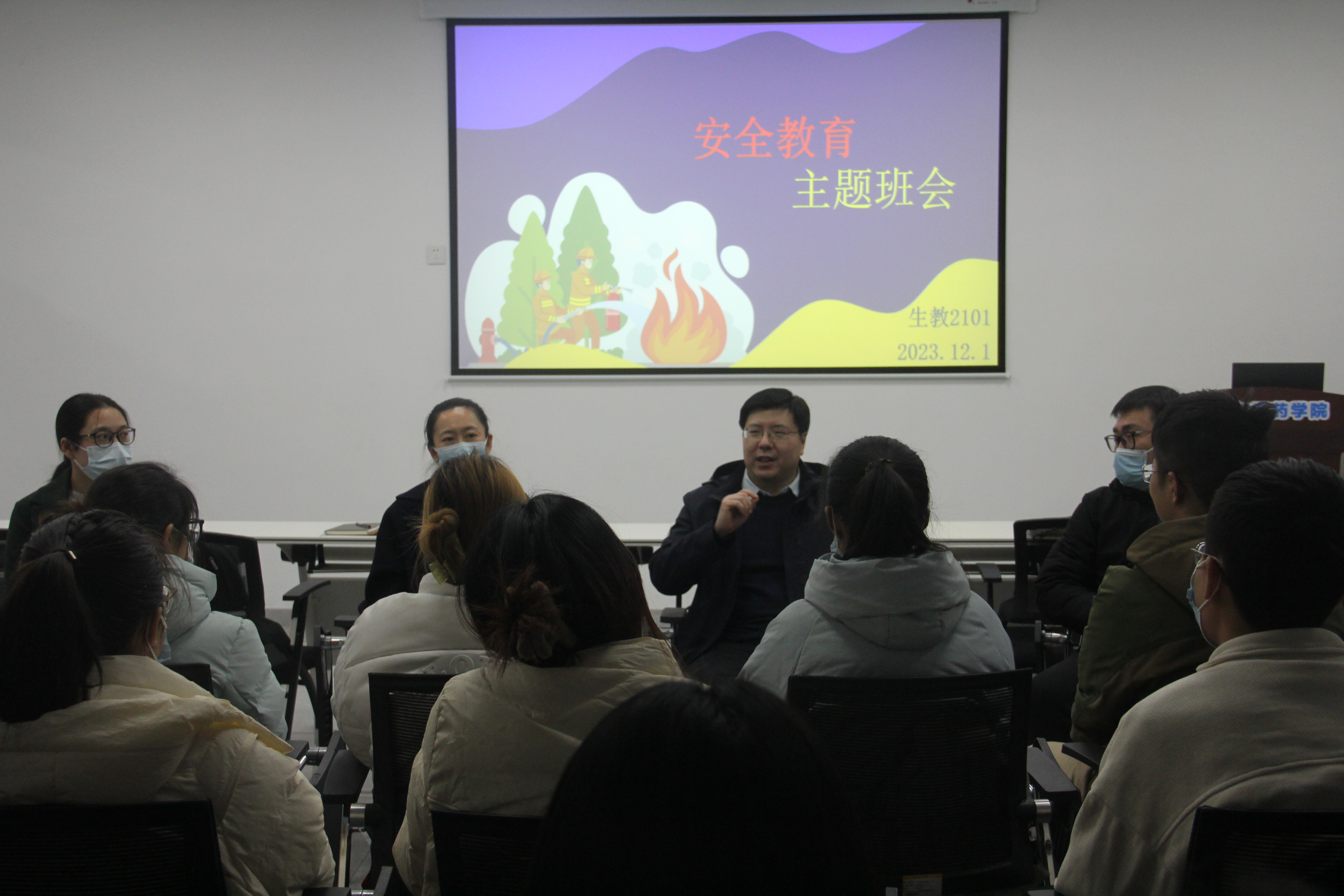 为切实提高学生安全意识,筑牢安全底线,12月1日下午,第三届“冯思广班”(生教2101班)于13教215室召开安全教育主题班会。学校安全保卫处处长孙晓深入联系班级参加了本次安全主题班会,并与班级同学进行互动交流。学院党委副书记姜素琼、班主任吴韦韦、辅导员李超参加。班会由团支书朱慧莹主持。