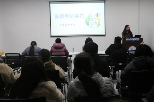班会上团支书董青林以“学以载道,诚信为本”为主题对诚信考试内容进行讲解。学习委员高倩倩强调了近期考试科目、时间、复习方法及注意事项。班长何国彰对班级问题和现状进行梳理归纳总结。