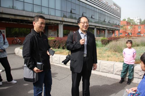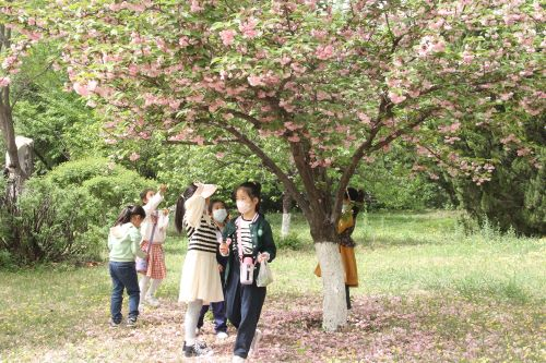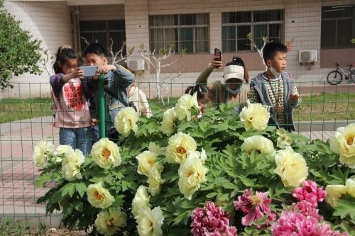 上午9点整,小记者们和陪同家长在东门集合完毕后有序入校。毛睿和徐恒戬在大红炉前向众人讲解了本次活动的行程,随后便带队前往牡丹花园。一到牡丹花园,小记者们就围在盛放的花丛旁,徐恒戬耐心地为小记者们介绍园中的花朵。