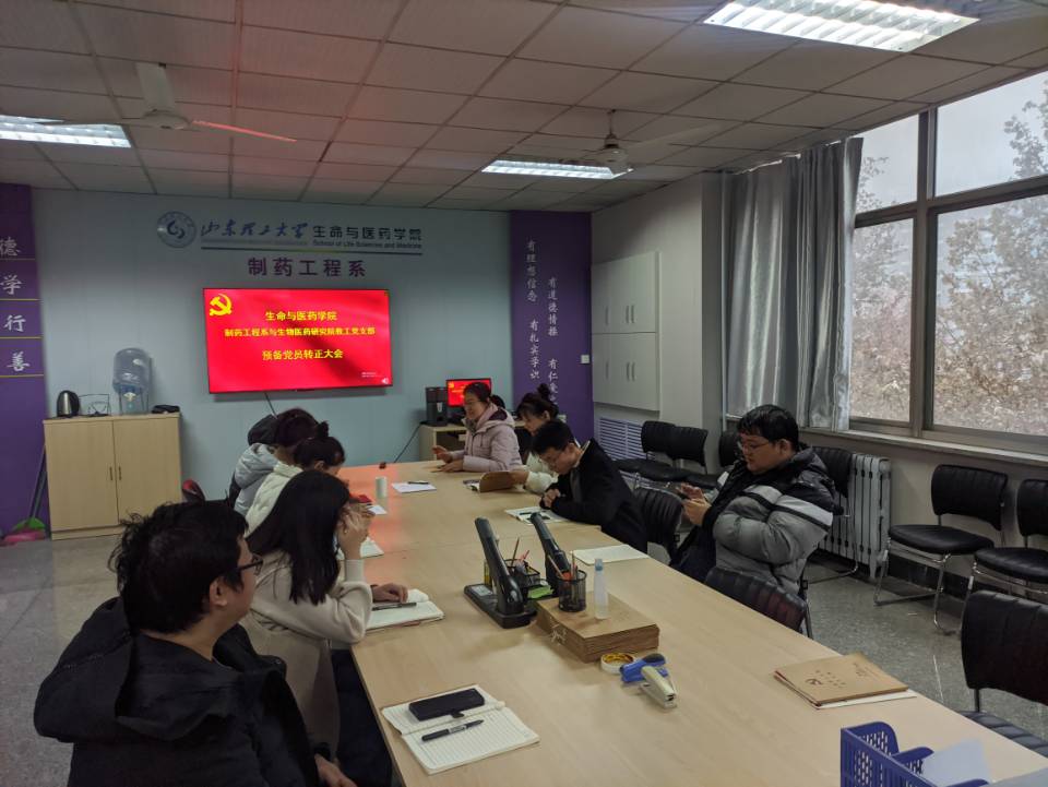 12月14日下午,制药工程系与生物医药研究院教工党支部在13号教学楼459会议室召开预备党员转正大会,讨论孙文龙、冯玲同志按期转正事宜。会议由学院制药工程系与生物医药研究院教工党支部书记曹忠红主持,支部全体党员参加。